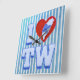 Denna design visar en virkad typsnitt som staver ett djärvt budskap om kärlek till Taiwan med hjälp av mjuka garnstrukturer och en handgjord estetik. Blå och vit bokstavstyp refererar till Taiwans ikoniska blåvita tofflor, medan ett livfullt rött hjärta framhäver en detalj på Taiwankartan. Kontrasten mot en mörk bakgrund förstärker det taktila fiberkonstutseendet och blandar kulturell symbolism med lekfull, strukturerad typsnitt för en visuellt varm och uttrycksfull komposition.