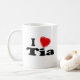 Jag älskar Tia! Är ditt namn Tia? Har du en make, en pojkvän, en male familjemedlem eller en manligvän som du vet kärlekar dig? Eller har du en fru, en flickvän, en kvinnlig familjemedlem eller en kvinnlig vän som namnges Tia som du älskar djupt? Om så, är denna "som jag älskar" muggen, exakt gåvan som du söker efter! Designen presenterar brev "mig" i svart bokstäver med en röd hjärta på det bästa och "Tiaen" i svart bokstäver på grunden.
