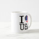 Iconic "mig "hjärta" USA" som är grafisk på en kaffemugg. Patriotisk amerikandesign med en klassikervintagelook.