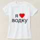 Jag älskar vodka, med en stor röd hjärta, i rysk (Cyrillic) bokstäver