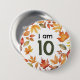 Fira en tioårsdag med den här stilbrickan. Med "Jag är 10" ord och gräns i löv i Fall är knappen vit med mörkens grönt nummer 10. Ett idealiskt tillbehör till födelsedagsbarnet.