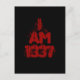 Jag är 1337. Djup röd text. Leet Gamer. Vykort