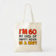 Jag är 60 Min idé om glad timme är en tupplur rolig tote väska. En bra tote väska för någon som fyller sextio! Det gör en bra skämtpresent för 60-årsjubileum! Bra för att hålla andra 60-årspresenter eller till och med som en present i sig.