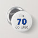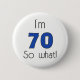 Jag är 70 så vilken 70:e födelsedagsknappen. En knapp för någon som firar 70-årsdagen. Det kommer med ett lustigt citat jag är 70 så vad, och är perfekt för en person med en känsla av humor.