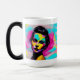 Idékterande kaffe mugg. Färgfull rosa, blå, gult och svart graffiti stil-grafik. " Ai-genererad konst. generativeinnehåll
