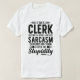 Jag är en Clerk och min sarkasm beror på din dumhet. Tittar du för en rolig Clerk-skjorta? Du är vid högerna ställe. Ta den här roliga Clerk-skjortan åt dig eller din vän, medarbetare, mamma, pappa eller morpa som är Clerk. Denna design är också underbar som en gåva till födelsedagar, jul, Thanksgiving och allmänhet.