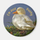 En söt liten vit anka är sitta på kustlinjen tittar redot att somna. Med mjuk text är jag bara Ducky text.