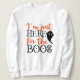 En rolig typografisk design med ett spöke som lyder: "Jag är här för boon".