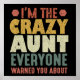 Lustigt retro-vintage-offertdesign... Jag är den galna moster som alla varnade dig för. Familjeutrustning för perfekt till galet moster, Auntie, syster, mormor, mamma, nya moster, vän, medarbetare... Fantastisk-skämtkläder till ge som är närvarande på kvinnodagen, mors dag, födelsedagen, föräldradag och andra särskilda tillställningar. perfekt till bära för arbete, utomhus, camping, familjemöten, bröllop, sport, löpning.