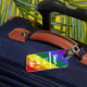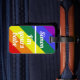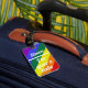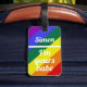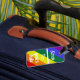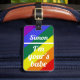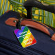 Märk din resväska med denna ljusrosa bagagetikett. Du kan ändra bakgrundsfärgen genom att klicka på knappen Anpassa.