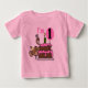 En söt första födelsedag på första födelsedag Tshirts, kartonger, kort, porto, magneter och andra födelsedagspressar och presentartiklar med apa, en chokladkaka med rosa trim, en rosa ballong och text som lyder "I'm 1"!