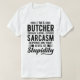 Jag är en Butcher som min sarkasm är beroende av din dumhet. Tittar du för en rolig Butcher-skjorta? Du är vid högerna ställe. Ta den här roliga Butcher-skjortan åt dig eller din vän, medarbetare, mamma, pappa eller morpa som är Butcher. Denna design är också underbar som en gåva till födelsedagar, jul, Thanksgiving och allmänhet.