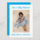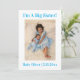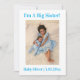 Ett enkelt, rent, minimalistiskt kort med ett fotografiskt födelseattest med text överst som säger "Jag är en stor syster!". Underbar för en storebror eller syster som hälsar ett nytt syskon in i familjen! Speciellt meddelande som du kan anpassa på baksidan.