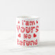 Designat med kärlek i åtanke har mugg en härlig typografi som djärvt deklarerar "Jag är din, inget bidrag". Den smarta kombinationen av engagemang och humor gör det till en idealisk gåva till en speciell person eller ett härligt tillskott till er egen samling.
