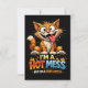 En vilt uttrycksfull och underhållande illustration av en storögd, sablande rödhårig katt i ett tillstånd av fullständigt kaotisk oordning, i kombination med djärv, eldig typografi som perfekt fångar den älskligt oinneslutna energin hos det ultimata heta rövarbot.