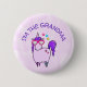 En knapp som säger: Jag är mormor, med ett viskigt teckning av en coola och funky rosa-kubik som har en lila mane och svan. Den här söta varelsen bär hjärtformade solglasögon och dekoreras med små stjärnor. Rosa vattenfärgsbakgrund.