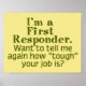 Det här lyder: "Jag är första svarare. Vill du än en gång berätta hur "tuff" ditt jobb är?" För de människor som har de arbeten som är verkligen tuff: polis, brandmän, rädding och andra akut och volontärer.