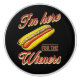 Retro stil färgstark "Jag är här för Wieners"-textdesign med färgfull dekoration för hund av smakfull hett
