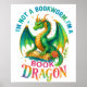 En brant, färglös design med en stapel av bokar, ro och en drake. Den färgstarka texten lyder: "Jag är ingen bokmask. Jag är en bok drake". Den här utformningen är tillgänglig för en mängd olika produkter.