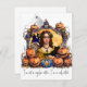 En söt häxa med vingar och en tom stam, som håller hennes lojala svarta katt. De är inramade av pulserande orange pumpor, som tillfogar en aning höstcharm till sammansättningen. Kortet visar en lekfull och coola-vib, perfekt inkapslad av citatet "Jag är ingen vanlig häxa, jag är en coola häxa", skrivet nedanför bilden.