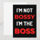 Jag är inte Bossy, jag är Chef. Detta är ett roligt citat från kort som är underbart som en uppskattande gåva till företagare. Lämplig som gåva till småföretagare.