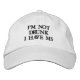 Vit broderade hatt: "JAG ÄR INTE DRUNK JAG HAR MS."