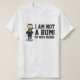 Lättsinnig design med en skäggig, lat tittar karaktär som säger: "Jag är ingen bum! Min fru jobbar." Om ni vill ha en viss typ av humor, så kommer ni att uppskatta denna underbara utformning. Perfekt för människor som stannar hemma i pappor eller människor som försöker späda upp en tillfällig arbetslöshet med lite humor.
