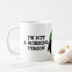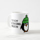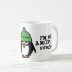 Jag är inte en morgonmänniska mugg med rolig pingvin tecknad. Lustigt citat för människor som hatar att komma upp tidigt på morgonen. Humor för hem och kontor. Den ekonomiska utformningen av kopp.