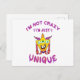 Rolig design med en söt konstig varelse och talesättet “Jag är inte galen jag är bara unik”. En perfekt matchning för barn och för vuxna.
