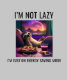 Vem säger att släpphänthet är ett dåligt sak? Den här t-shirt-designen har en grafik i roligten och ett smart meddelande som lyder "Jag är inte lazy, jag är bara i energisparläge" i en avslappnad och ett relaterat teckensnitt.