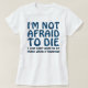 Jag är inte rädd för att dö. Jag vill inte vara där när det händer. Lustigt ordspråk och humoristiskt citat, och otacksamt.. Gör ett lustigt påstående med det här fåniget ett linjerabort. Roligt säger med lite fräckhet. Text i mörk blått och fullständigt anpassade.