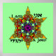 Multifärgad stjärna av David i ett keltiskt knotwork mönster och ord "I are a jude"/ Ani Yehudi på engelska och hebreiska
