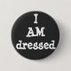 Knappen "Jag är påklädd" för covid-19 corona-viruspandemier hemma eller på jobbet från hemmet. För den nya normala attityden, som T-shirts, sweat byxor eller pyjamas.