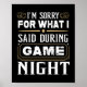Perfekt för alla spel i fläkt! Alla som spelar vet att spelnatten kan bli intensiv. Be om ursäkt redo i förväg!