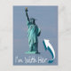 Utformningen är en bild av Frihetsgudinnan ovanför ord, "Jag är med henne!" Vissa produkter har också ord till sonnet New Colossus ("Ge mig din trötta, dina stackars, dina tråkiga massor som längtar efter att andas fritt ...") som är ingraverad på en plack på frihetsgudinnans bas.