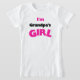Jag är morfars T-tröjor, kroppsdräkter, sömnlösa klänningar, skjortor, ruffelklänningar, hattar, sweatshirts, tröjor, långärmader, roprar, mörk T-tröjor och andra kläder, för barn, småbarn och spädbarn, med en tydlig rosa och svart text som lyder: Jag är morfars flicka!