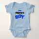 Jag är Nanas T-shirts, långärmad T-tröjor, kroppsdräkter inklusive organiska kroppsdräkter, fotbollsdykostymer, hattar, romer, mörk T-shirts, raglan T-shirts och andra kläder med en ljusblå och svart textdesign som lyder: Jag är Nanas Boy!