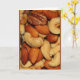 Ett foto av saltat blandat nöt, inklusive cashews, pekaner och valnötter, är subjekt på mitt hälsningskort "Jag är Nöt Om dig!".