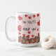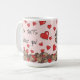 "Jag är NÖT om dig!" läser den här söta Valentine mugg med min handmålade grått-ekorren och kornen, där röda hjärtan regnar ner. Skriv det med kärlek från dig, med ditt namn i skript, på ekorreets höger - enkelt att använda textmallen och redigera-menyn. En söt, vismisk, unik Valentindagspresent till vilken ekorre, djur eller natur som helst älskare. Bakgrunden är en rosa i säsong. Originalgrafik och design av Tuzi Williams.