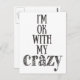 NewParkLane - vykort med ett lustigt citat "Jag är okej med mitt galna", i modern handskriven typografi.