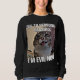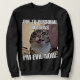 Det är en kvinnas tröja med en rolig och superskoj kattmemma