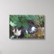 Den osynliga katten. Big grått och vit katt gömmer under vissa löv på en hett dag. Kattfotografi. Katt älskargåva.
