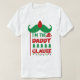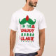Den här vita t-tröjan har en lekfull juldesign. En stor mustasch med röd näsa är överst, följt av texten "IM THE" och "DADDY CLAUSE" i festive red lettering. En liten julhatt som sitter ovanför "DADDY" och grönt Julgranar och en sträng färglöst ljus kompletterar utformningen och skapar ett humoristiskt helgdag för ett far-figur.