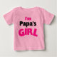 Ljusare rosa och svart textdesign som visar att jag är Pappa Girl på Pappa T-shirts, roprar, klänningar, kroppsdräkter, sweatshirts, pullovrar, hattar, långärmader, T-tröjor, tutukostymer och andra kläder för spädbarn, barn och småbarn.