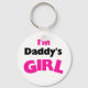Nyckelkedja med svart text och shock rosa textdesign lyder "Jag är Pappor Girl".