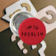 Fäst din personlighet med denna djärva "Jag är problemet" design, skriven i en lekfull svart handskriven stil. Perfekt för jackor, ryggsäckar, hattar eller halsband, den här knappen är ett litet tillbehör som gör ett stort intryck. Oavsett om du visar upp din sarkastiska humor, väcker konversation eller ger den som en present till en vän som stolt *är* problemet, sprider den här designen skratt och attityd vart den än tar vägen.