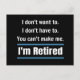 Jag är trött... Jag vill inte.. Det behöver jag inte. Du kan inte tvinga mig. Jag är pensionerad. Den underbara tänkan om pension kan inte få er att göra någonting. Det här är en underbar gåva.