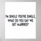 Jag är singel, du är singel. Giftermål genom förha Poster