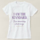 Gör en påstående utan att säga ord. Den här djärva och kraftfulla designen har "I is the Standard" i den slående serif-typen, parad med den milda påminnelsen "Sluta jämföra. Börja vara." En perfekt biet för självsäkra flickor som definierar sitt eget värde.