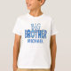 Jag är storebror personlig baby t-shirt i blått. Anpassningsbar söt personlig med namn. Den här designen har blå pojkbroder, lustig citattext i humor, matchande t-shirts i syskon, vismisk grafik, en trendig modern typografi i typsnitt med en söt, kunnande baby t-shirts i stil. Jag är storebror, rivaliteten baby småbarn syskon, storebror, storebror, skjortor